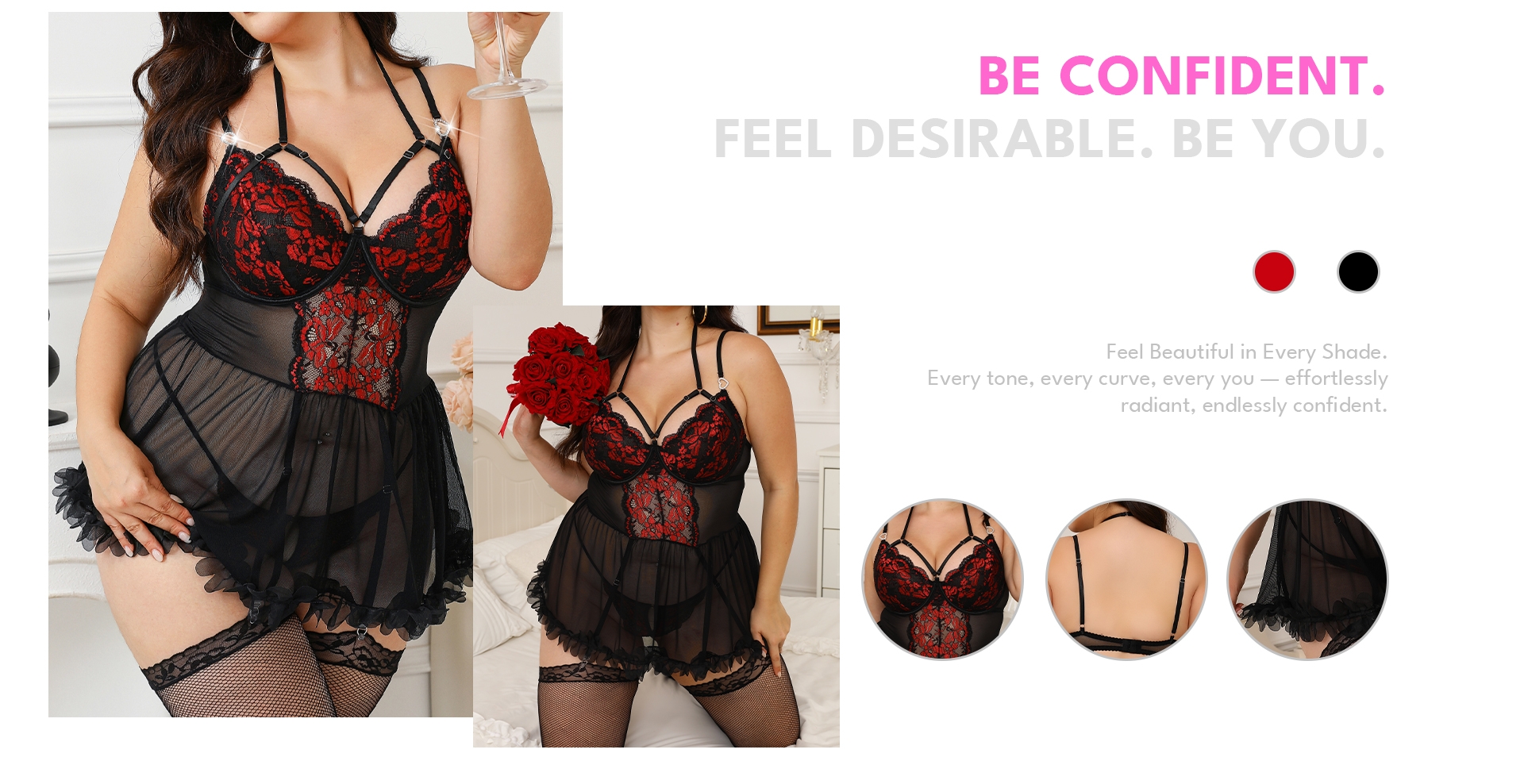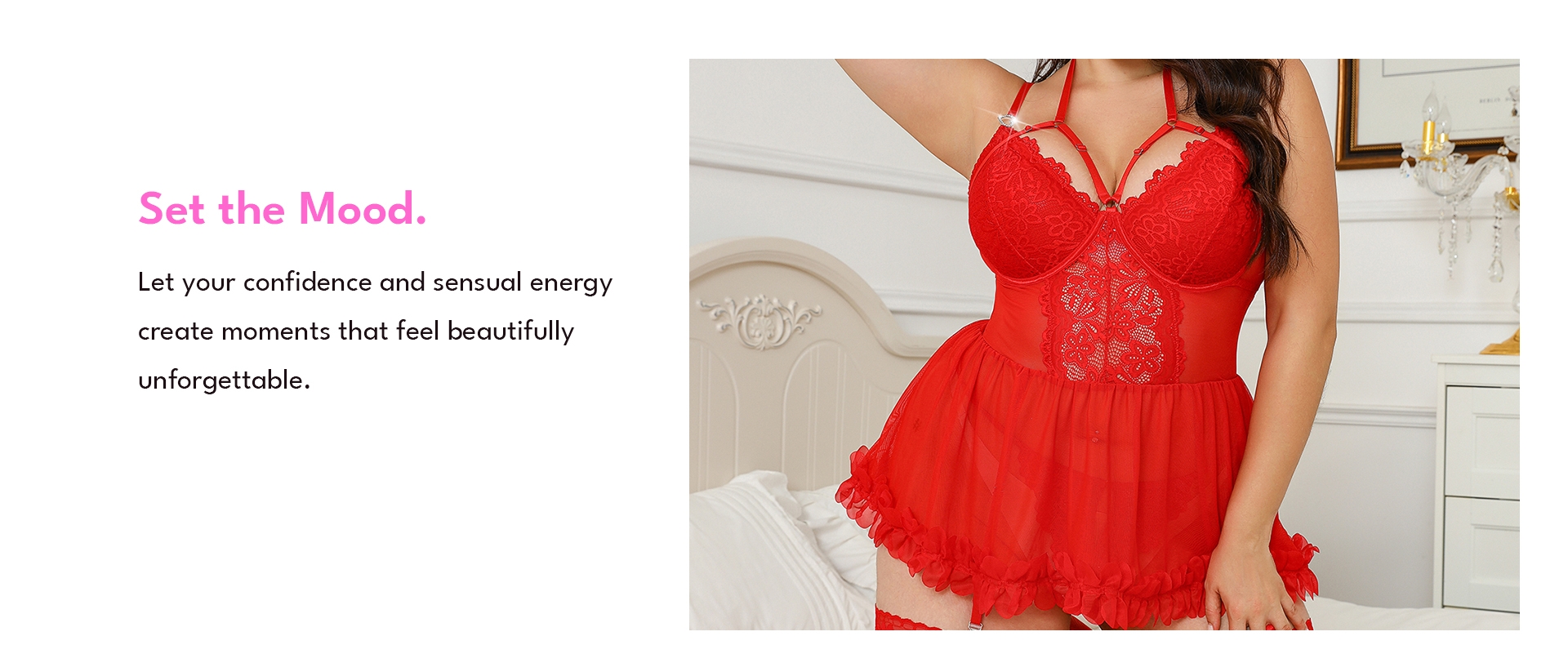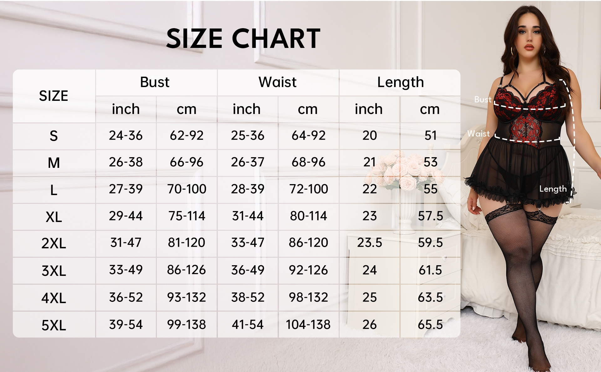 Elegant lace babydoll with stockings for curvy beauty.
